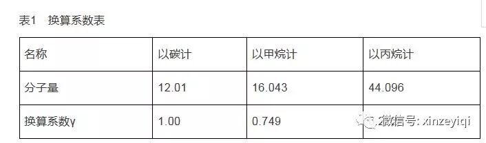 以甲烷計或以丙烷計濃度換算為以碳計濃度的換算系數表見表1。換算系數保留3位有效數字。