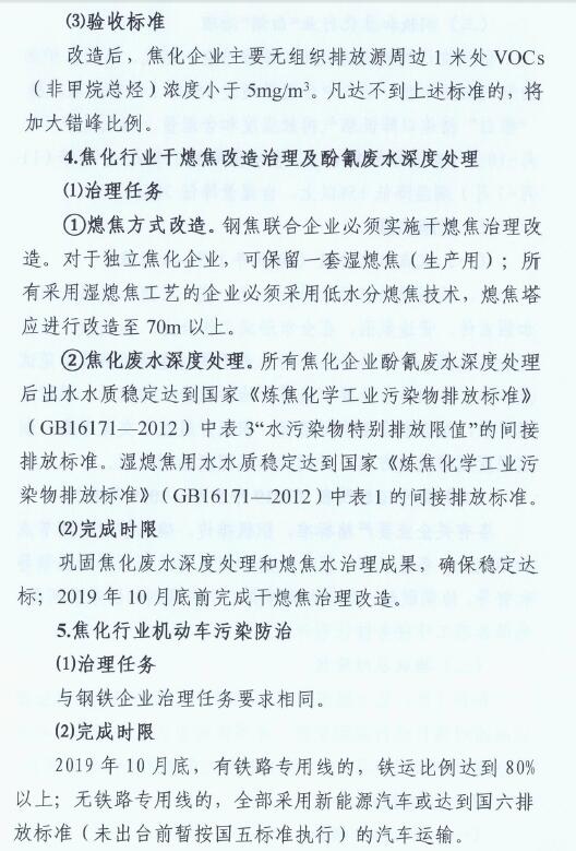 2、2019年10月底前,全市焦化企業全面完成無組織排放治理和監測、無組織排放管、控、治一體化智能平臺建設。