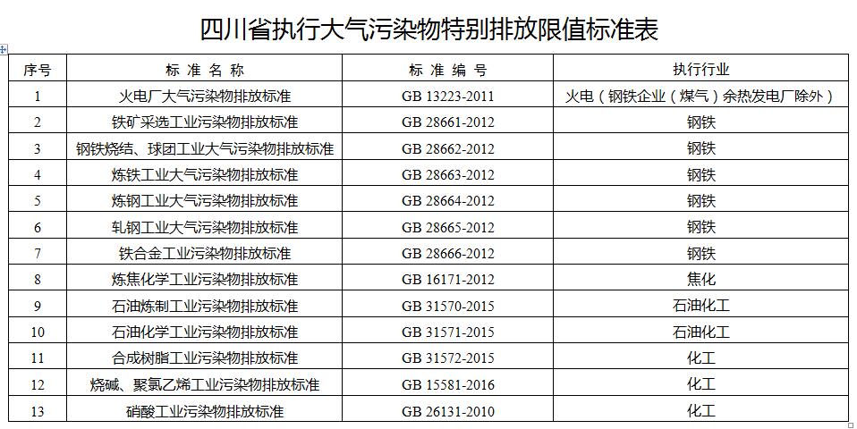 為加快我省大氣環(huán)境質(zhì)量改善,打贏藍天保衛(wèi)戰(zhàn),根據(jù)《中華人民共和國大氣污染防治法》《四川省〈中華人民共和國大氣污染防治法〉實施辦法》《四川省打贏藍天保衛(wèi)戰(zhàn)實施方案》等相關(guān)規(guī)定,決定在我省大氣污染防治重點區(qū)域執(zhí)行顆粒物、二氧化硫、氮氧化物和揮發(fā)性有機物等大氣污染物特別排放限值。