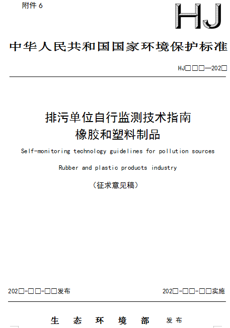 排污單位自行監測技術指南 橡膠和塑料制品