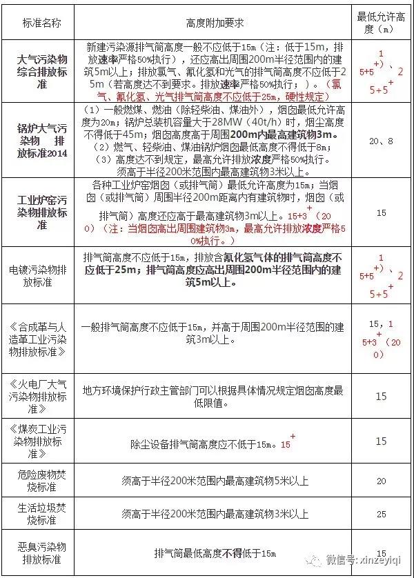 二、各大氣排放標(biāo)準(zhǔn)對(duì)排氣筒高度的規(guī)定