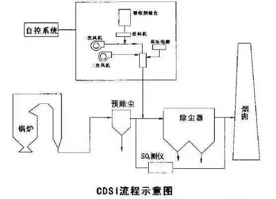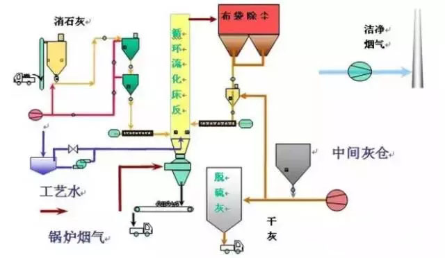 脫硫反應后的產物以干態粉末形式從分離器中吹出。這種脫硫技術應用石灰石或消石灰做脫硫劑。具有很高的脫硫率及脫硫劑利用率,而且對環境的影響很小。