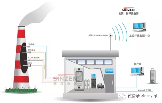 其運行原理是通過加熱抽取法(抽取冷凝法)將煙道中氣體取出并輸送到預處理單元,預處理單元將煙道中的氣體經預處理后送入分析儀表。通過在線氣體分析儀表(煙氣分析儀)對煙氣中多種污染物進行連續(xù)監(jiān)測,將測量數據顯示在儀表上,最后通過環(huán)保數采儀或VPN將監(jiān)測數據實時傳到環(huán)保監(jiān)控網絡。